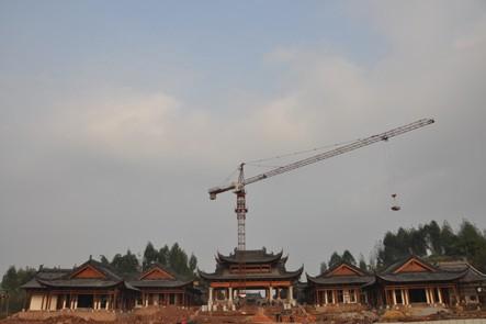 建设中的宝顶山游客中心正门大殿(2013 年 8 月 6 日摄)