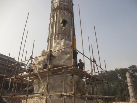 “心月禅柱”石雕安装(2013年12月15日摄)