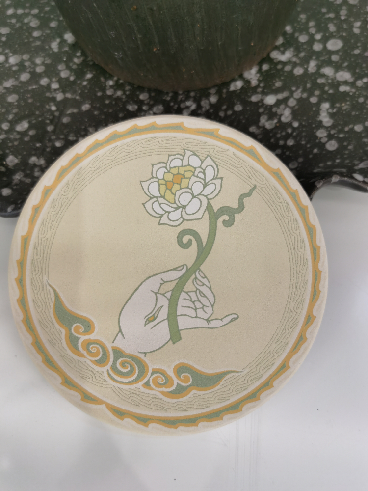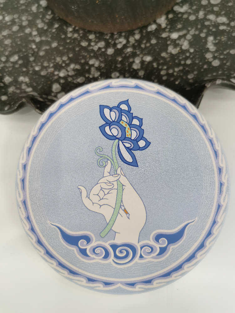 融入大足石刻千手观音千手千眼手持莲花的设计元素,以陶瓷烧制而成。