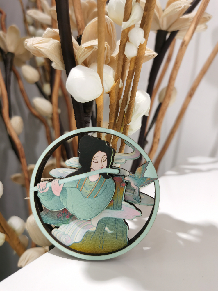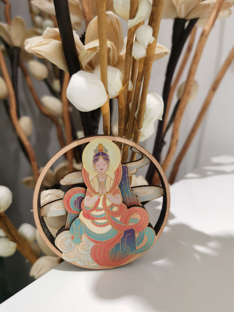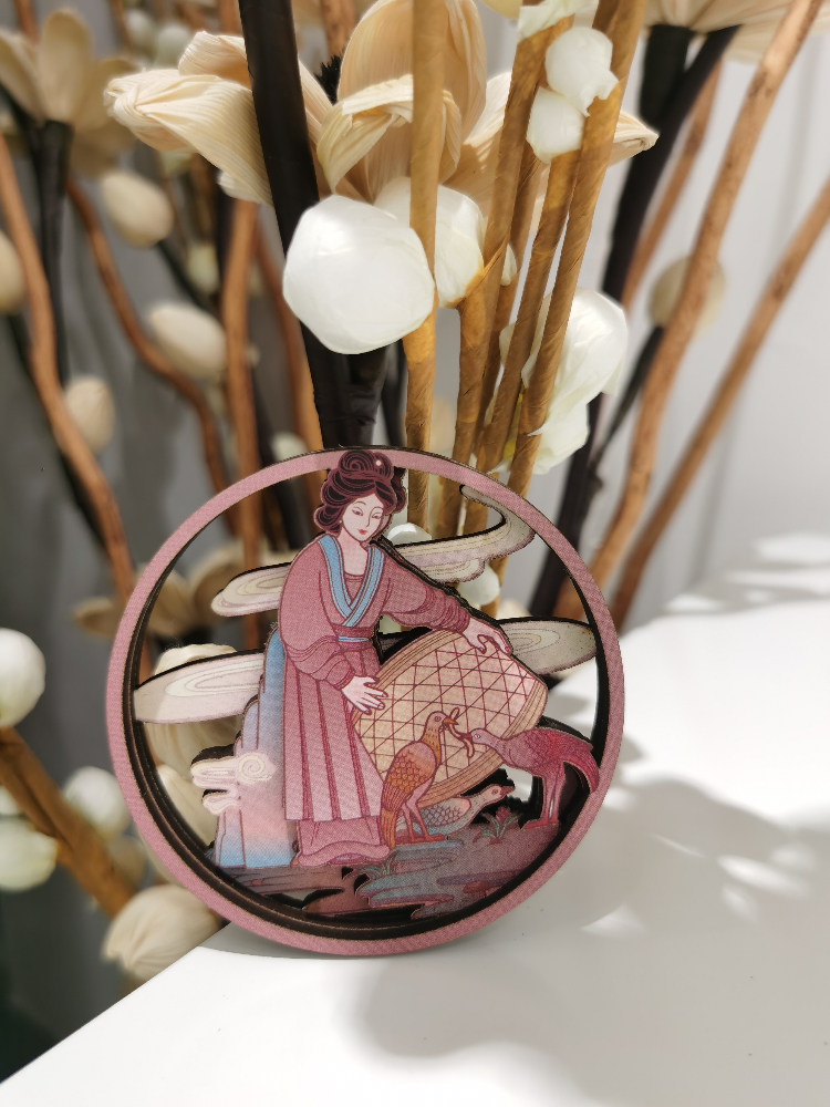 本系列产品取材于大足石刻中养鸡女、吹笛女、水月观音等形象,凸显了古代女性的质朴、勤劳、婉约之美。具有传统冰箱贴功能,将其贴于冰箱之上,为平淡生活增添一丝文化情趣。