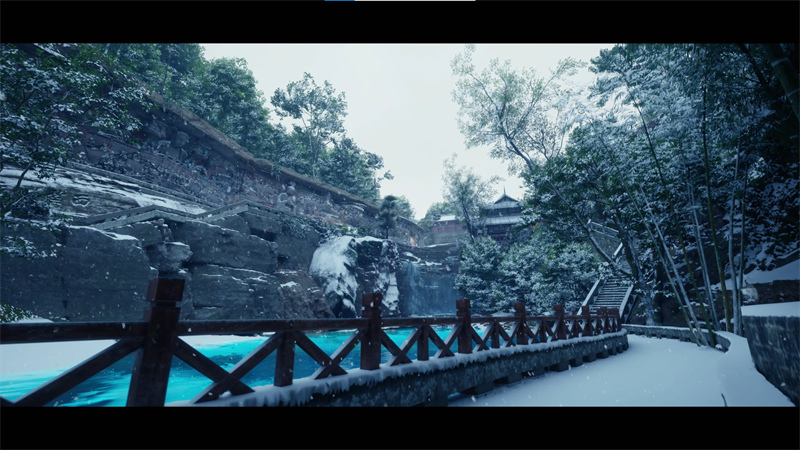 为给观赏者带来沉浸式真实感受,技术团队运用当前最先进的UE5引擎实时渲染,通过全场景视觉和实时光线追踪等技术,在8K超高精度的画质中,呈现出毫米级高保真细节、自然的光影变化和高度真实的材质还原效果。融入天气系统,让观赏者不仅能在数字场景中深刻感受大足石刻这一历史文化瑰宝,更能体验到大足石刻一年四季的景色变换,甚至欣赏到罕见的雪中大足石刻美景,为观赏者带来一场全新体验的线上文化视觉飨宴。