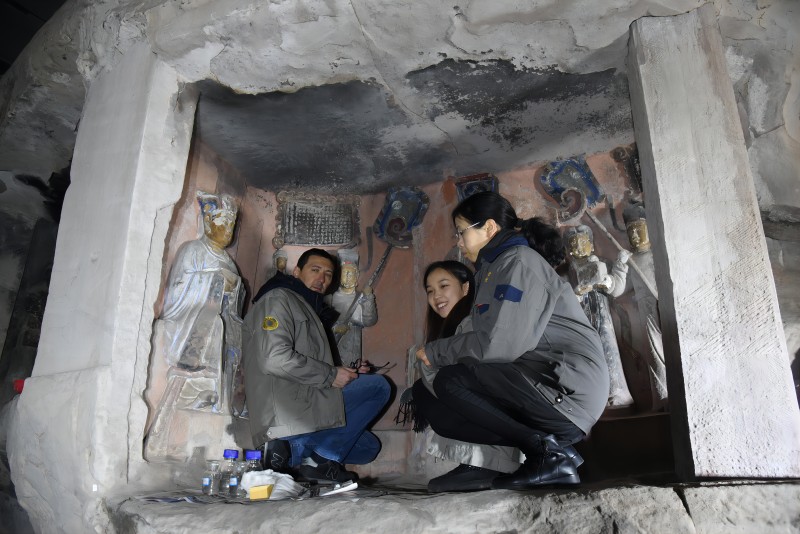 In March of 2017, the Academy of Dazu Rock Carvings and the Venetian Cluster signed the Technical Collaboration Agreement on Sino-Italian Cooperative Conservation on Shuchengyan Rock Carvings at Dazu. This project is research on conservation and restoration for painted and gilded stone cultural heritages under humid environment jointly carried out by the Academy of Dazu Rock Carvings of China and the Venetian Cluster of Italy. The two sides have done the survey of the preservation status, the study on the disease mechanism, the conservation and restoration test and the restoration.