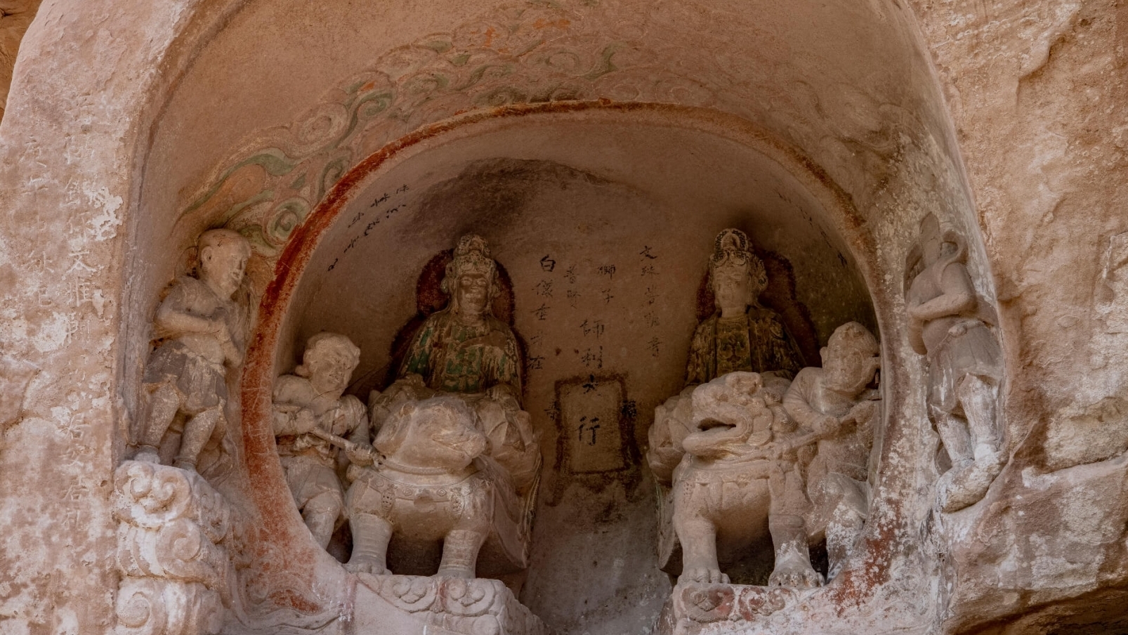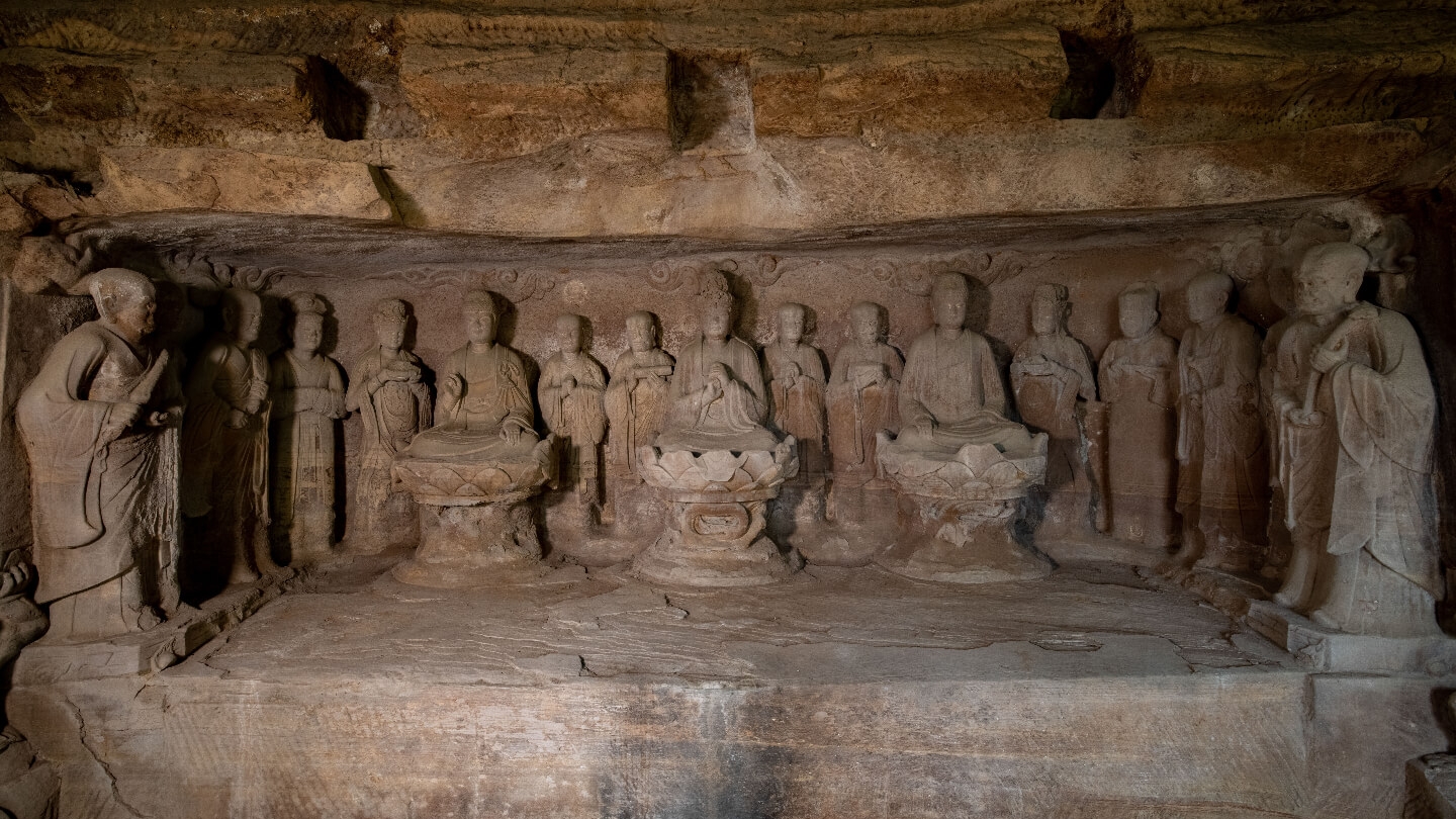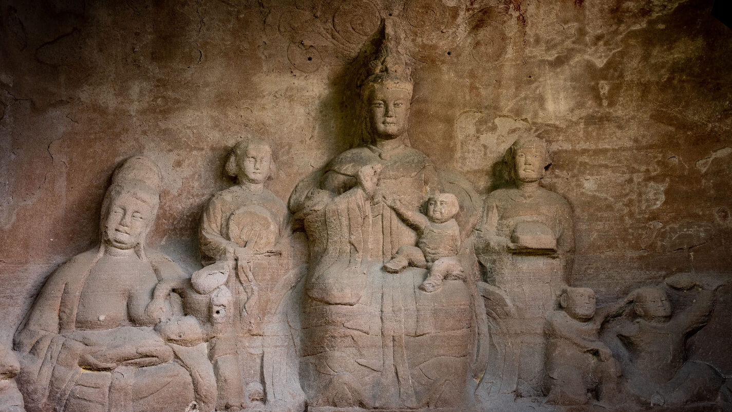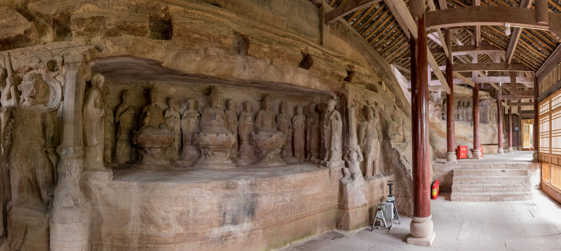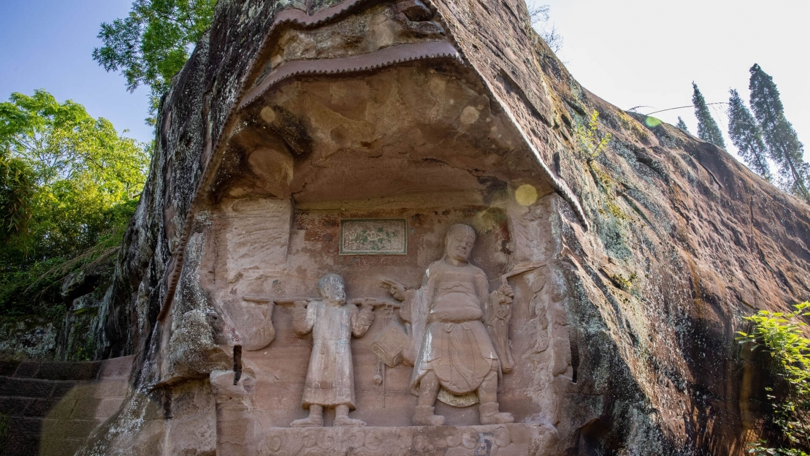 石篆山石刻位于大足西南20公里的三驱镇佛会村。据宋碑和纪年造像镌刻,石篆山石刻由庄园主严逊于北宋元丰五年至绍圣三年间(1082—1096)主持开凿,相传是蜀中名僧希昼禅师的开山道场。造像为典型的释、道、儒“三教”合祀造像区。石窟附近另有石塔、摩崖造像、碑碣等。山顶修建佛会寺,今存有“佛会寺”建筑,乃元季兵燹后于明永乐年间重修。1999年12月1日被列入《世界遗产名录》。