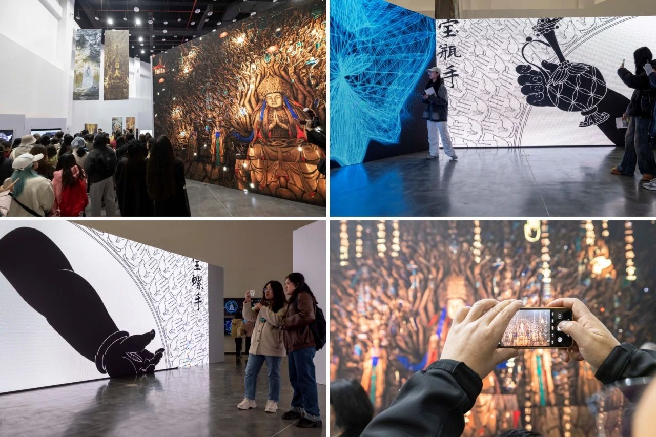 该展于2023年12月9日正式开展,展览共呈现数字交互、单频影像、数字插画、虚拟影像等多种类型作品97件。作品聚焦中国丝绸之路的物质文化遗产,以大足石刻为起点,探索数字科技语境下的丝路遗产表现“新全景 ”,建构科技与艺术相融合的“新方法 ”,力图充分凝练丝路遗产的历史价值、文化价值、审美价值、时代价值,推动传统文化遗产的创造性转化和创新性发展。开展以来,“新”形式的大足石刻吸引了众多观众的目光,获得了较好的社会反响。