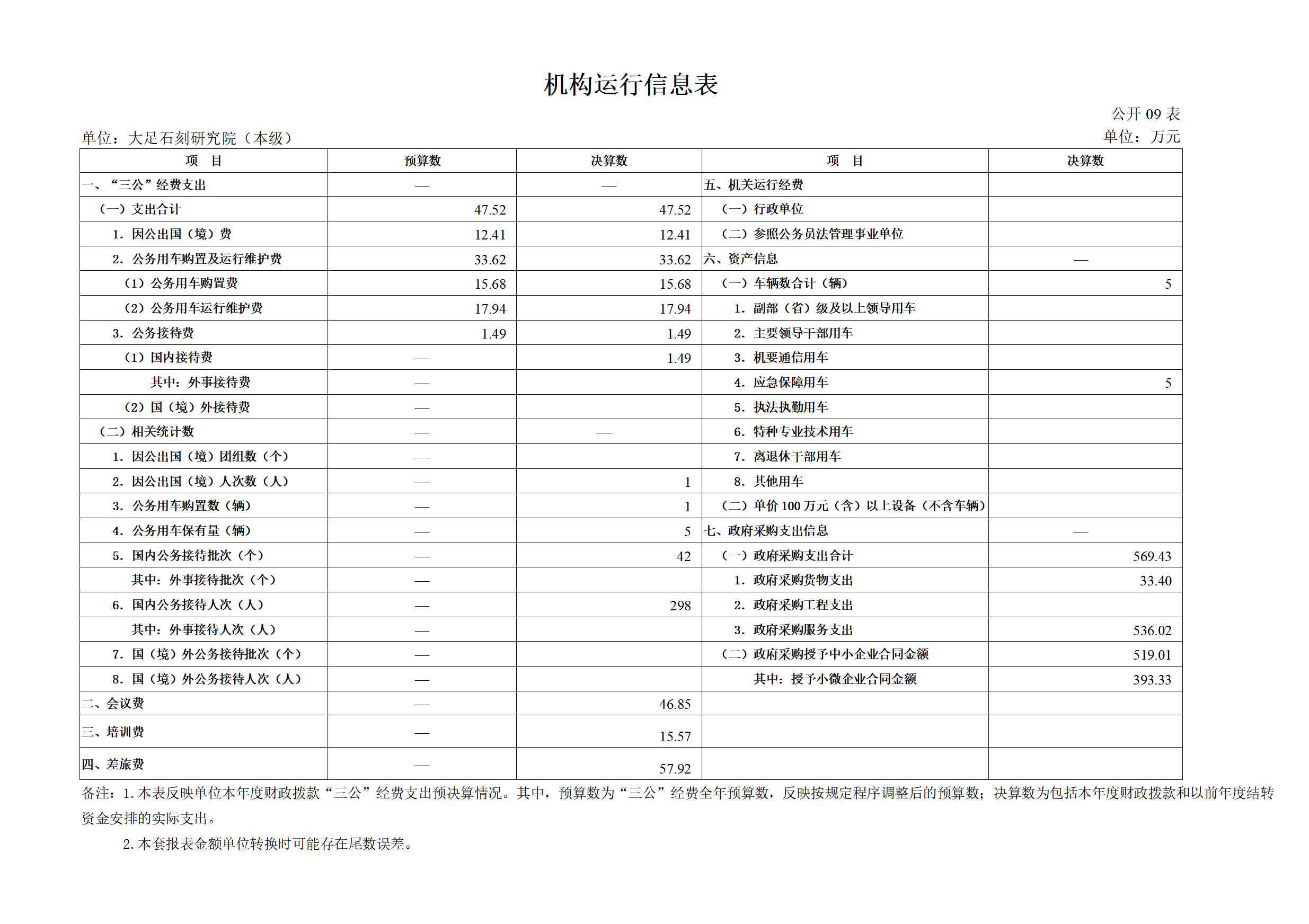 本年度会议费支出46.85万元,与2023年度相比,减少80.17万元,下降63.1%,主要原因是2023年开展气候变化背景下的石窟寺保护——石窟寺保护国际论坛会,本年减少了此类大型会议的开展。本年度培训费支出15.57万元,与2023年度相比,增加11.05万元,增长244.5%,主要原因是新晋职干部赴昆山培训支出,单位职工公需科目、专业科目培训,邀请专家开展党纪教育培训等。本年度差旅费支出57.92万元,与2023年度相比,减少4.93万元,下降7.8%,主要原因是严格按照差旅费相关文件进行费用报销,控制差旅费的支出。