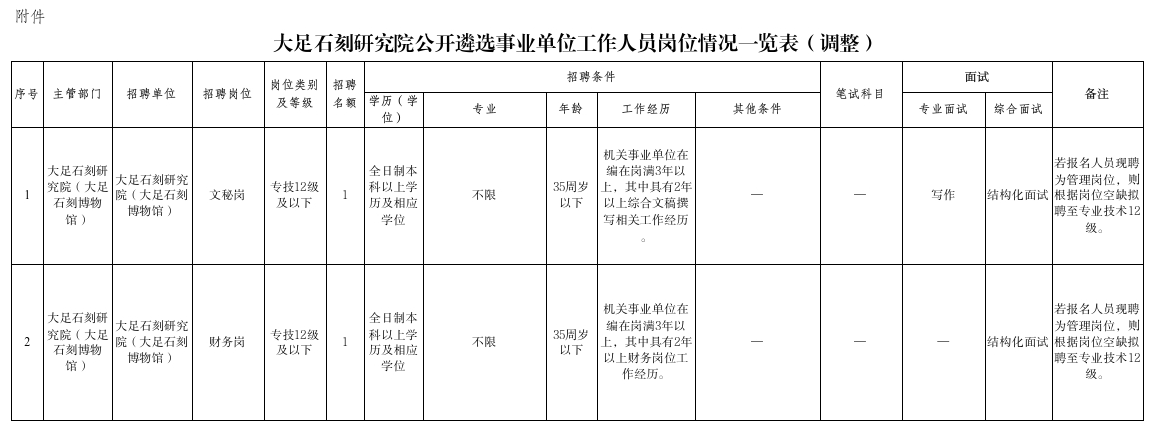 附件:大足石刻研究院公开遴选事业单位工作人员岗位情况一览表(调整)