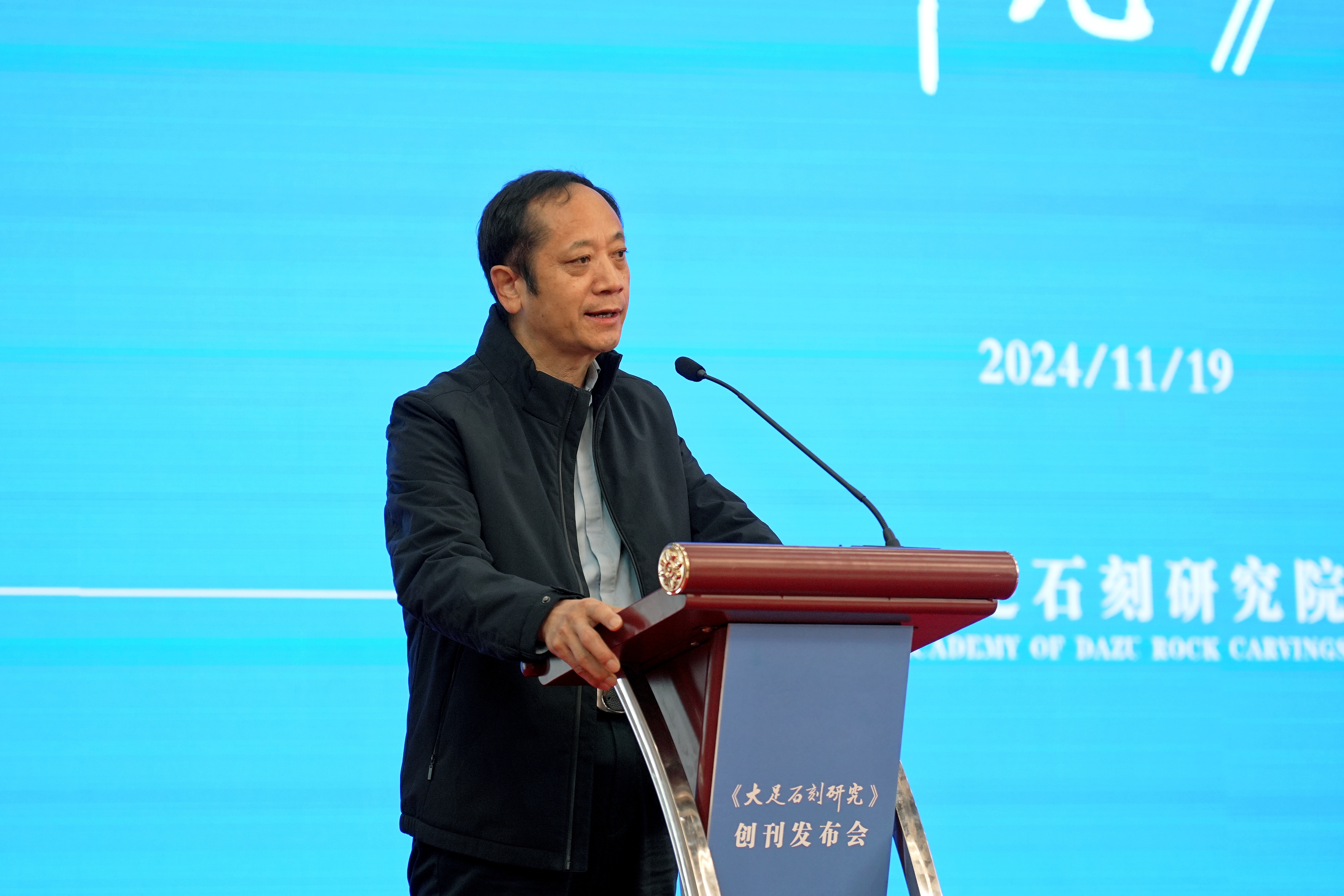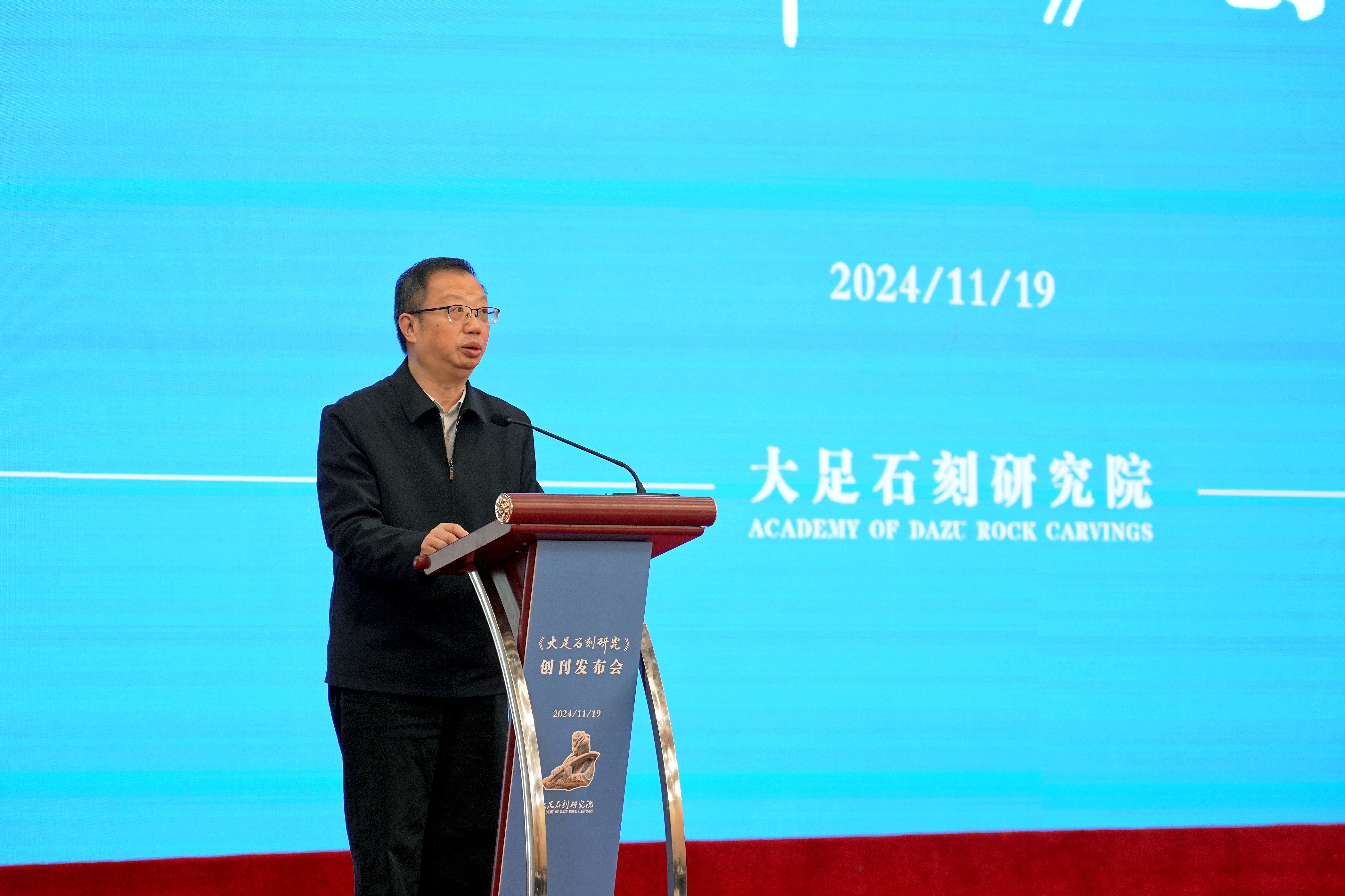 11 月19 日,《大足石刻研究》创刊发布会在大足石刻学术报告厅举办,主管单位领导、国内专家学者、期刊主办单位、高校科研院所、文博单位、新闻媒体等出席。该刊是国内继敦煌研究院之后,第二家由石窟寺管理单位创办的国内外公开发行的学术期刊,也是重庆市文博单位主办的公开发行的首家学术期刊。