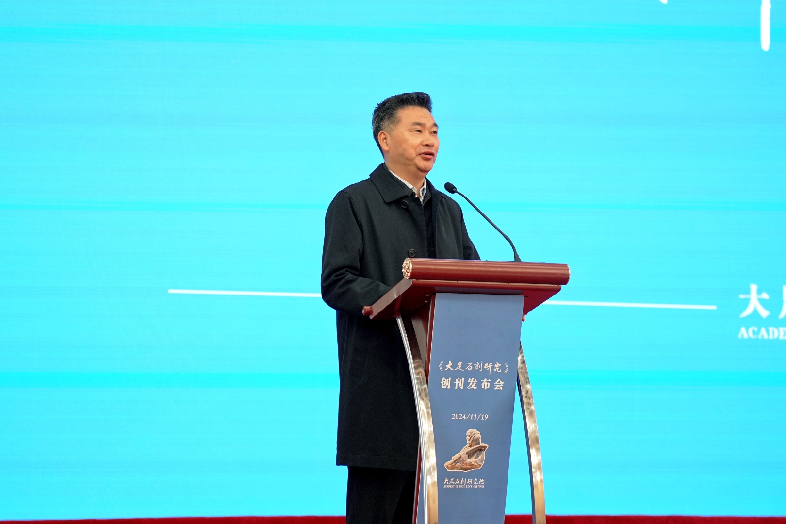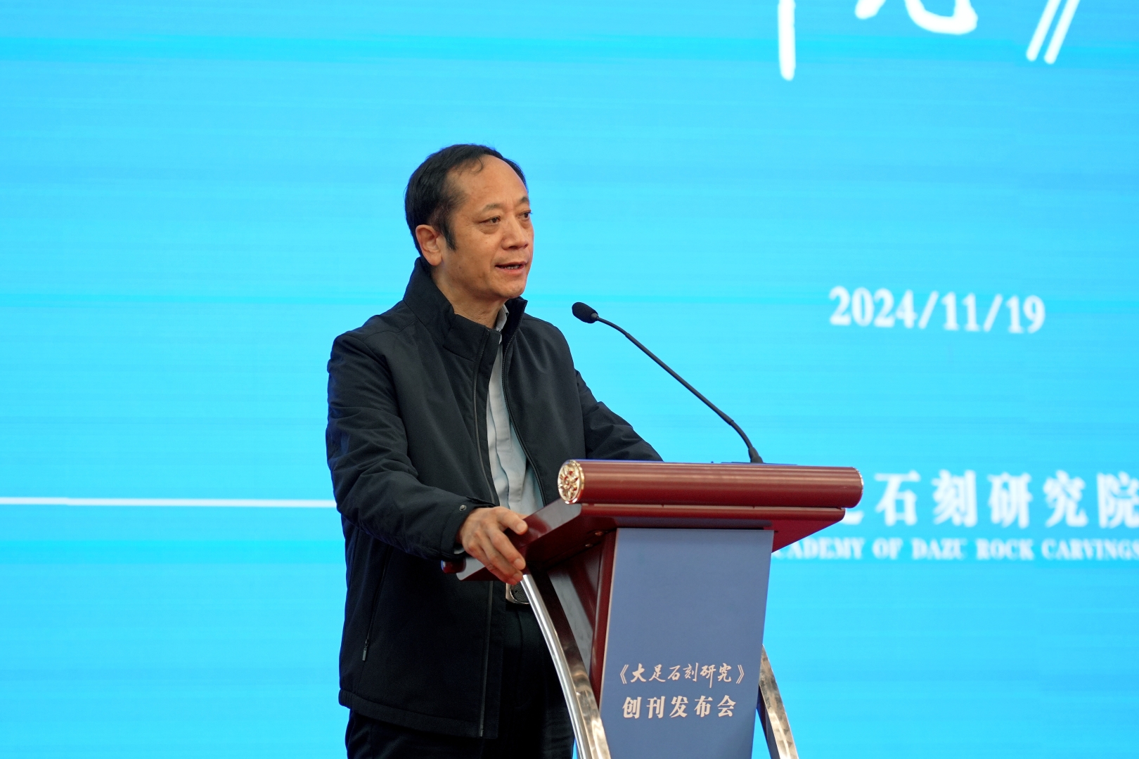 2024 年11 月19 日,《大足石刻研究》创刊发布会在大足石刻学术报告厅举行。中国文物学会、中共重庆市委宣传部、重庆市文化和旅游发展委员会、重庆市期刊协会、中共大足区委、大足区人民政府等主管部门和行业管理机构领导,以及《大足石刻研究》期刊顾问、编委,国内相关高校、科研院所、文博单位、期刊主办单位、新闻媒体单位等80余位代表出席。