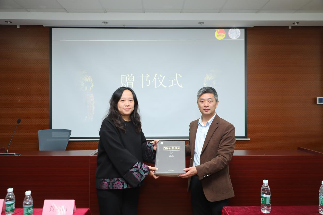 活动伊始,《大足石刻》和《小笛》两部宣传片让现场观众直观感受了石刻艺术的恢弘与精妙。大足石刻研究院副院长龙伟与苏州大学社会学院党委副书记、副院长朱今代表双方赠受书,旨在进一步推动校地学术资源共享,加强双方在学术研究、人才培养等方面的交流合作。