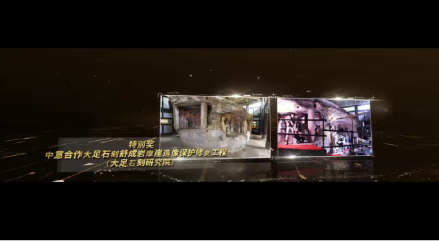 中意合作大足石刻舒成岩摩崖造像保护修复工程荣获“2025年度文物保护优质工程”特别奖。项目是中意首次合作对潮湿环境彩绘贴金石质文物开展的保护修复项目,项目充分发挥国际合作优势,从前期勘察研究、保护修复试验到现状修复坚持以科技为支撑,有效地维系了文物原真性,促进了中意两国文物修复领域技术与经验交流。