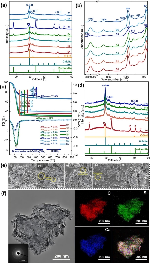 水害是石窟寺最典型、最严重的病害,又是引起石窟寺发生结构失稳、风化剥蚀、表面污损、生物病害最主要的因素和根源,石窟寺因渗漏水问题,导致其价值减损乃至丧失。治理石窟渗水病害的关键措施之一就是选择最佳的灌浆材料对裂隙进行封堵。团队前期以大足石刻为研究对象,通过采用实验与分子动力学模拟技术结合的方法,深入解析C-S-H与大足石刻这种以钙质和泥质胶结的砂岩主要矿物的界面作用机理,揭示了氢键在界面胶结中的关键作用,验证了机械磨合和化学成键的共同作用,为材料性能优化提供了理论支撑。基于这一发现,团队在常温下合成出具有网状结构的C-S-H胶凝材料,并通过系统优化钙硅比、水胶比、胶砂比及减水剂掺量等参数,显著提升了灌浆材料的综合性能。优化后的灌浆材料具有成本低、合成简易、纯度高等优点,具有流动性好、耐候性强等特点,尤其与石窟岩石基体具有很强的兼容性,使其成为大足石刻渗水病害治理的理想候选材料。