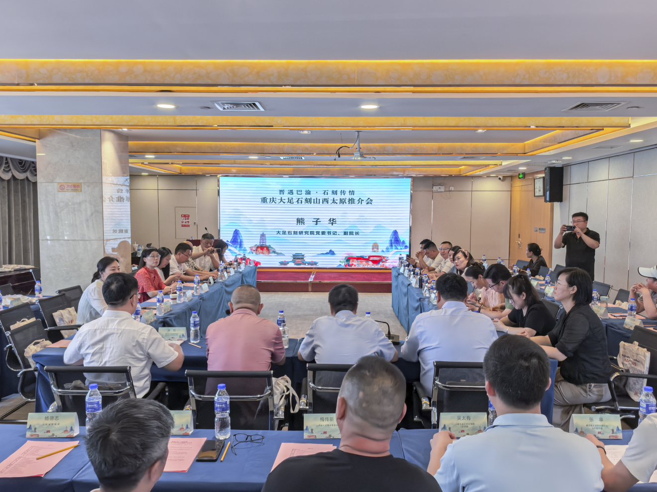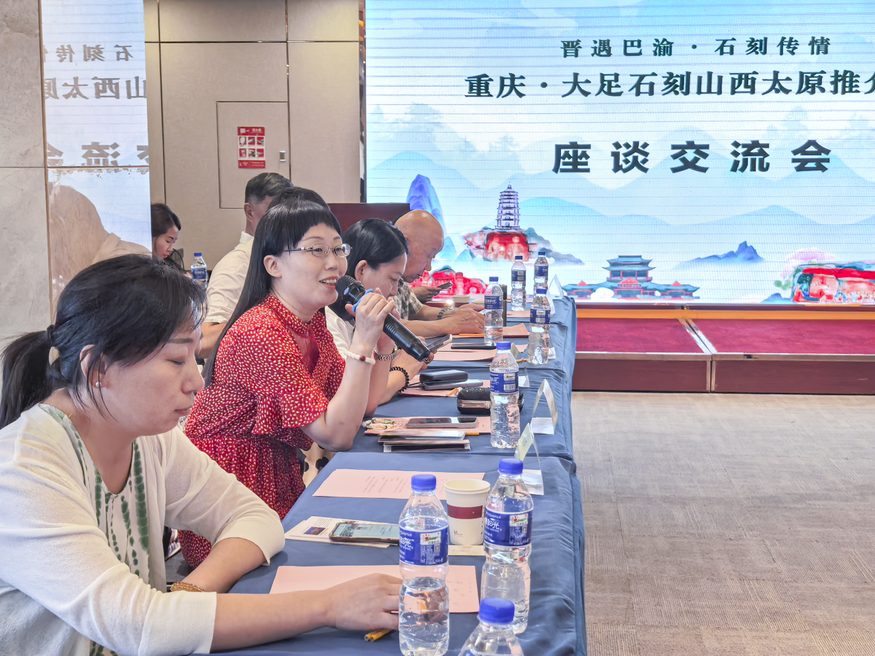 2025年7月18日,“晋遇巴渝·石刻传情——重庆大足石刻山西文旅推介会”在山西太原隆重举行。晋渝两地文旅单位、旅行社、研学机构、山西大足商会联络组负责人及媒体代表等50余人共聚一堂,共谋发展,旨在深化晋渝文旅合作,共同弘扬中华优秀传统文化,推动两地文旅协作向更广领域、更深层次迈进。