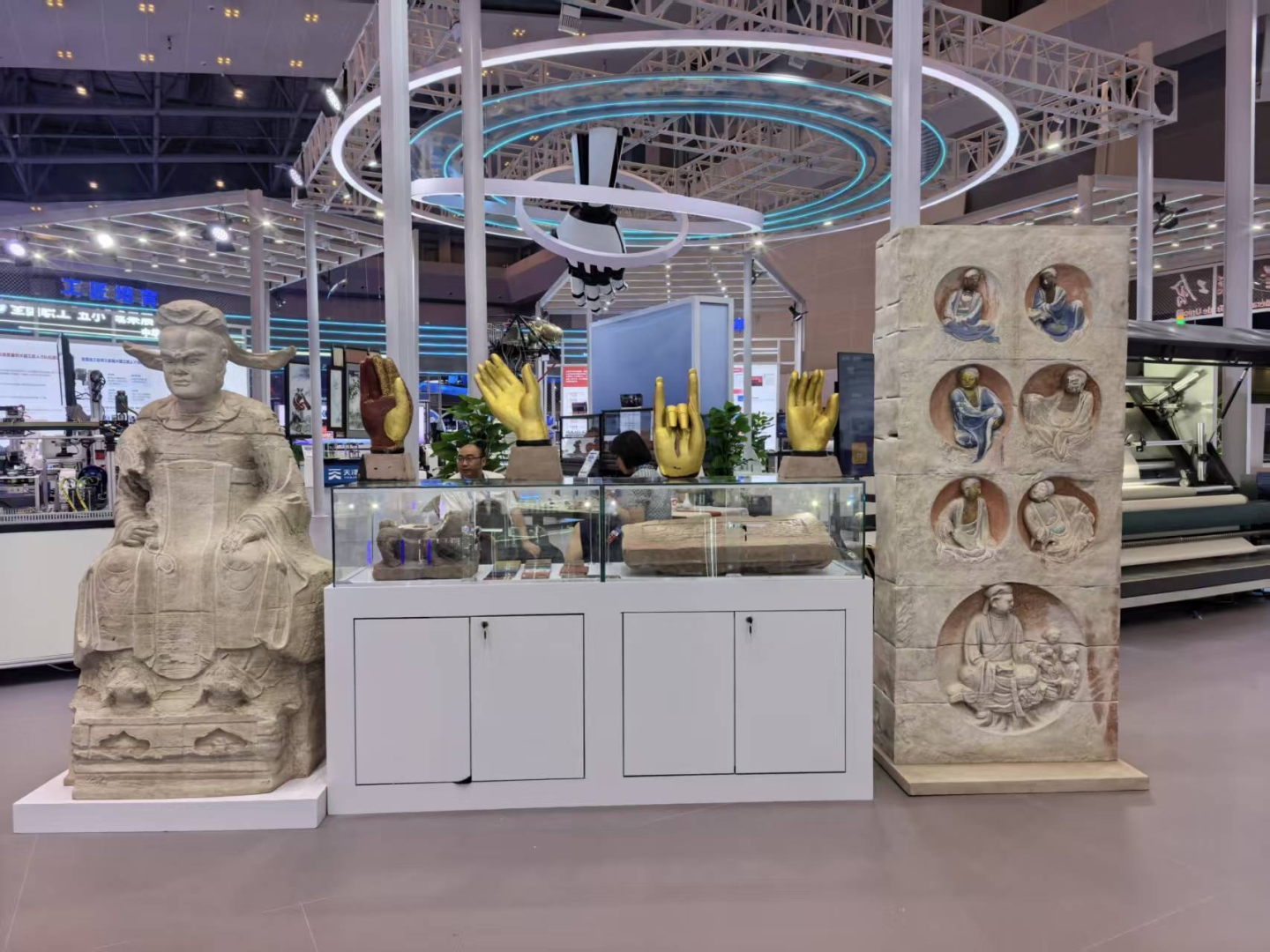 大会设置8400平方米的创新成果展示交流区,以简洁工业风、智能化展示和科技互动体验,全方位、多角度展示了大国工匠在发展新质生产力中的创新创造成果及工匠精神的时代价值。作为重庆唯一的世界文化遗产,大足石刻受邀参展,通过实物展示、影像资料等,向与会嘉宾和观众集中展示了大足石刻3D打印数字化成果、可移动文物修复、模拟样品等文物保护修复创新成果,展现了中国文物保护的科技进步,传递了文物修复工作者对文化遗产的敬畏之心,生动诠释了文物修复工作者的工匠精神,引起与会嘉宾和观众的广泛关注。