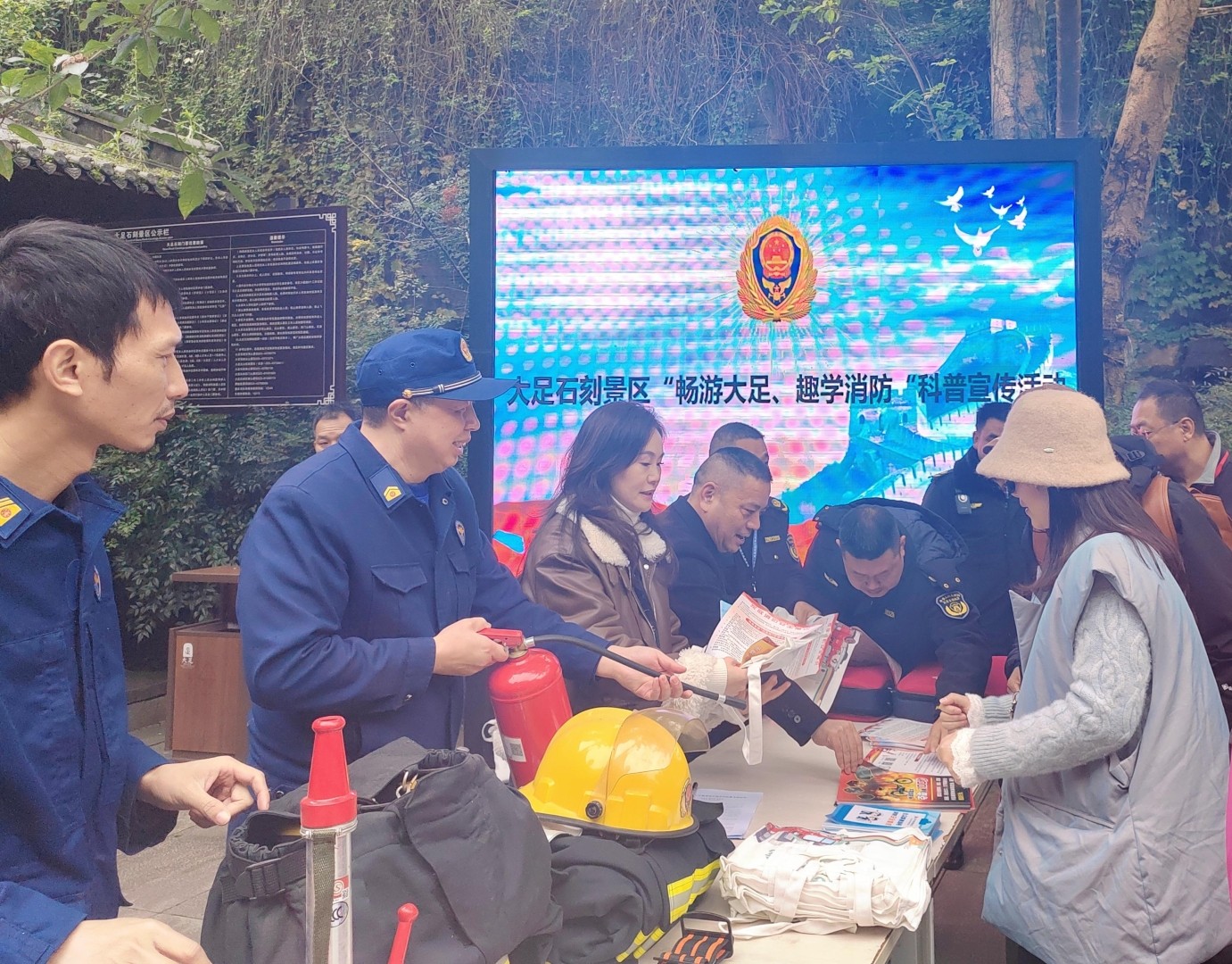 11月19日上午,大足石刻景区内暖意融融、干货满满,“畅游大足、趣学消防”消防科普宣传活动在此顺利开展。本次活动由大足石刻研究院联合区文旅委、区消防救援局共同主办,以“游玩+科普”的形式,为往来游客送上了一堂生动实用的冬季消防安全课。
