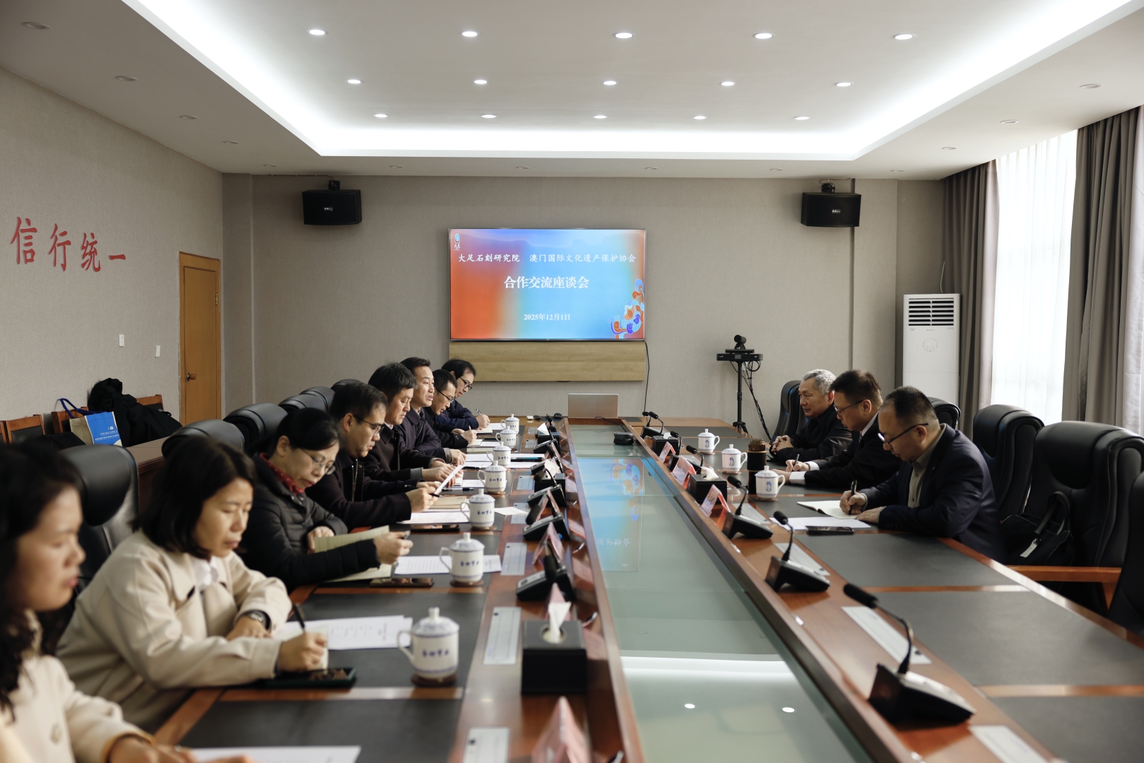 2025年12月1日,大足石刻研究院与来足出席“亚洲文化遗产保护青年大使计划—2025年石窟国际青年学术交流活动”的澳门国际文化遗产保护协会代表开展合作交流座谈,并达成战略合作意向。