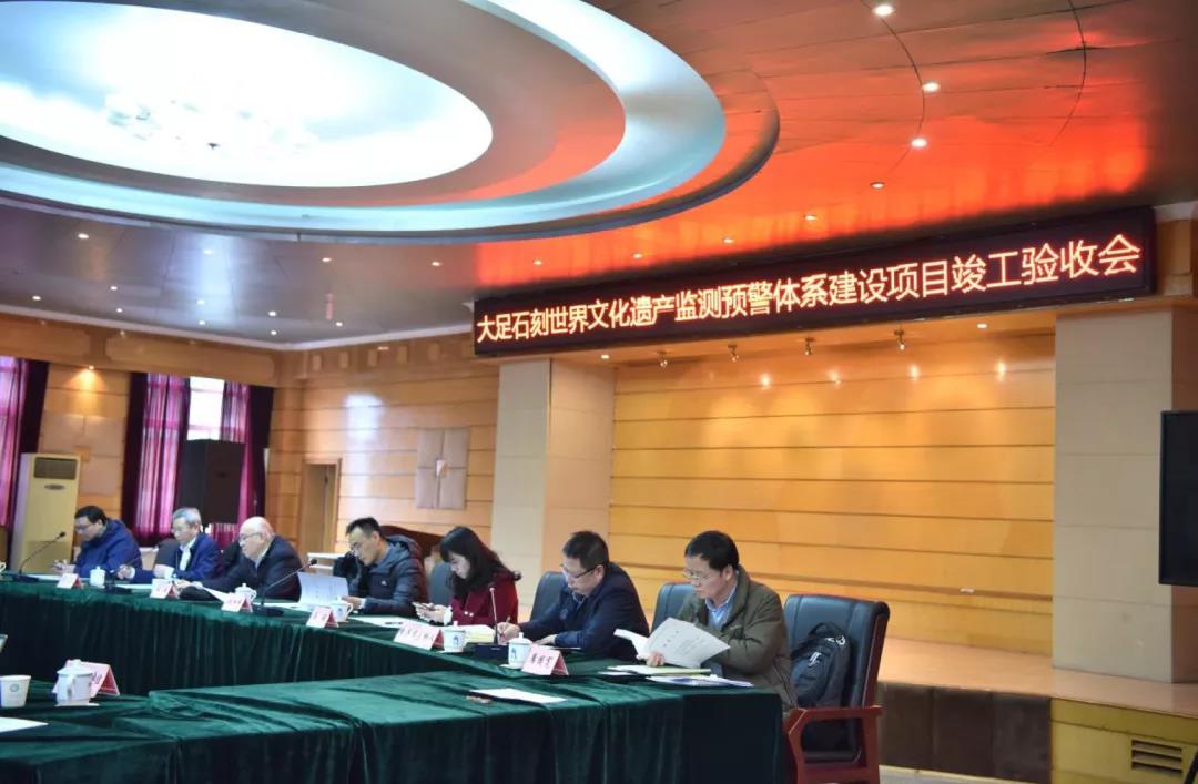 2019年12月26日,重庆市文化和旅游发展委员会组织的专家组,对大足石刻世界文化遗产监测预警体系建设项目进行了竣工验收。