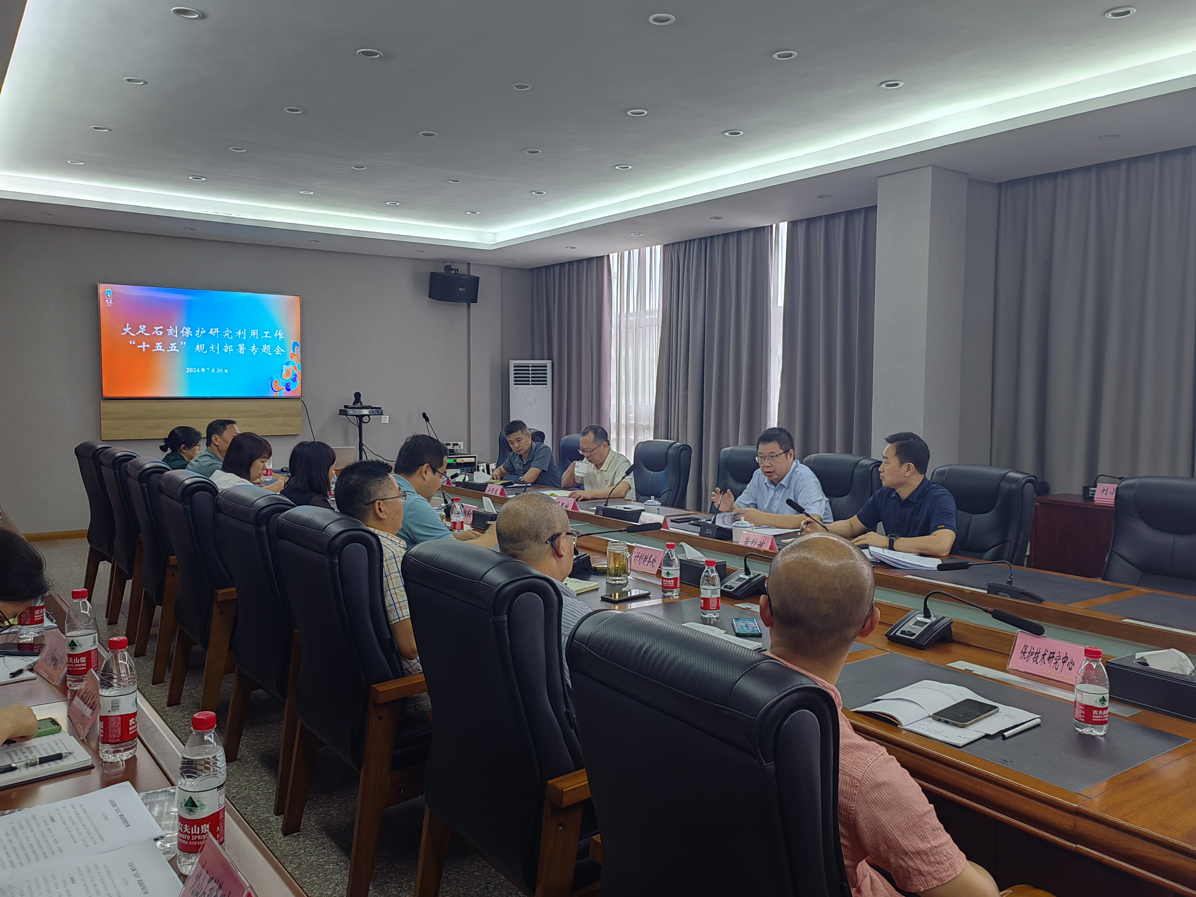 近日,重庆、四川两省市文化旅游委(文物局)联合在大足石刻研究院召开川渝石窟寺国家遗址公园总体规划专家评审会。重庆市文化旅游委(市文物局)党委委员、副主任幸军,四川省文化和旅游厅党组成员、四川省文物局党组书记、局长唐飞出席了会议。重庆中国三峡博物馆、上海复旦大学、重庆师范大学等单位的专家参与评审。会上,专家评审组听取了规划成果汇报,一致认为该规划调研充分,内容丰富,功能体系完备,空间布局合理,项目谋划深入,同意该规划通过评审。川渝石窟寺国家遗址公园总体规划编制工作,于2023年初启动,其间,川渝两省市多次召开征求意见会、专家咨询会和专家评审会,并于2024年6月形成川渝两省市的规划合稿成果。该规划旨在构建以石窟寺与山水环境、寺院遗址、聚邑、古道等相结合的“全要素”复合型保护展示体系,形成具有历史文化意义阐释及科研、教育、游赏等功能的川渝石窟寺国家遗址公园。下一步,该规划将报国家文物局审批后实施。