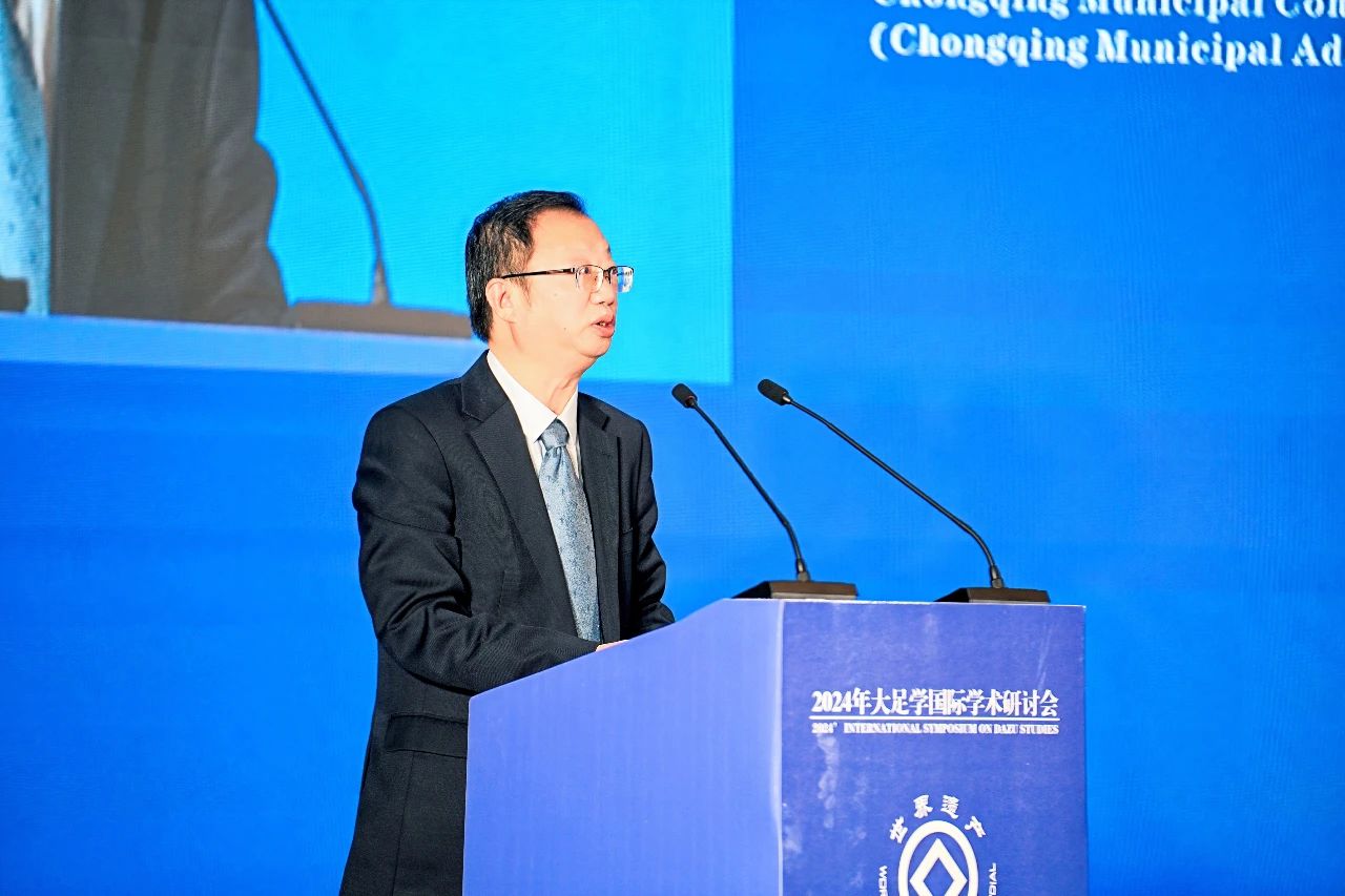 重庆在西部大开发和共建“一带一路”中发挥着重要的支撑带动作用,大足石刻作为世界文化遗产,是重庆市拓展对外交往、塑造文化品牌形象的重要舞台。近年来,大足石刻研究院遵循习近平总书记“一定要把大足石刻保护好”的重要嘱托,在重庆市文化旅游委和大足区委、区政府的坚强领导下,聚力于世界知名研究院建设,服务于国家、区域战略部署,在文化遗产保护、学术研究、传承利用方面取得了显著业绩。在遗产保护方面,全国石质文物保护“一号工程”千手观音造像保护修缮,被评为“全国优秀文物维修工程”;“川渝石窟保护示范项目”大足石刻宝顶山卧佛、小佛湾摩崖造像保护修缮工程和“国家文物局重点项目”宝顶山摩崖造像圆觉洞综合性保护工程有序推进;建成大足石刻文物医院、大足石刻安全技术防范中心以及大足石刻监测预警平台;实施大足石刻中小石窟保护设施建设项目,为全国中小型石窟保护探路。在学术研究方面,国家“十二五”重点图书出版工程《大足石刻全集》(11卷19册)考古报告编撰出版,填补了我国大型石窟寺编写和出版系列考古报告的空白;成功承办首届石窟寺保护国际论坛,发布《气候变化背景下石窟寺保护大足宣言》,为世界石窟寺保护提供了中国方案;创办《大足石刻研究》学术期刊,为国际国内学术界提供了一个新的专业平台。在传承利用方面,大足石刻博物馆获评国家一级博物馆,建成投用大足石刻数字展示中心,景区环境与服务质量显著提升;推出4K宽荧幕影片《天下大足》和8K球幕影片《大足石刻》,上线大足石刻数字博物馆和“云游大足石刻”等数字文旅项目,展示手段不断创新;举办国内外专题展览20余场,面向全球招募“大足石刻守护人”,以《黑神话:悟空》等为契机,向世界讲述石刻故事。足音铿锵,踵事增华。2024年是大足石刻列入《世界遗产名录》25周年,昭然之绩,必是对大足石刻申遗25周年的最好献礼。