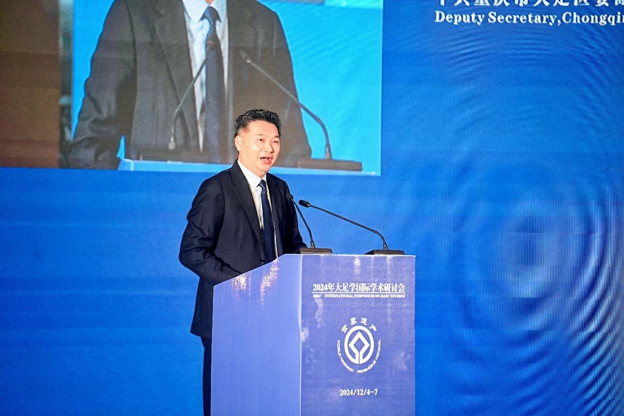 2024年大足学国际学术研讨会于12月5日在重庆大足华美达广场酒店举行。此次会议由大足石刻研究院主办,会期2天,来自全球11个国家和地区的120余名中外专家学者齐聚一堂,探讨大足学学术研究,共谋石窟寺保护利用发展宏图。